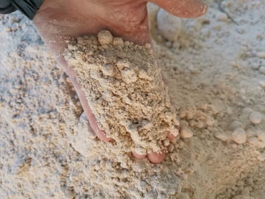 Le produit est fabriqué essentiellement à partir de pierre calcaire et d'une partie importante de magnésium. Seules les parties plus fines sont utilisées pour l'épandage.